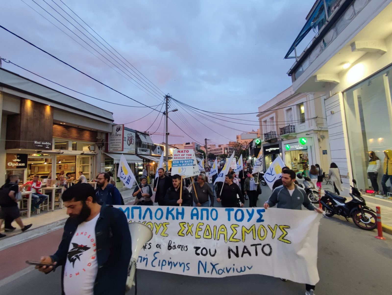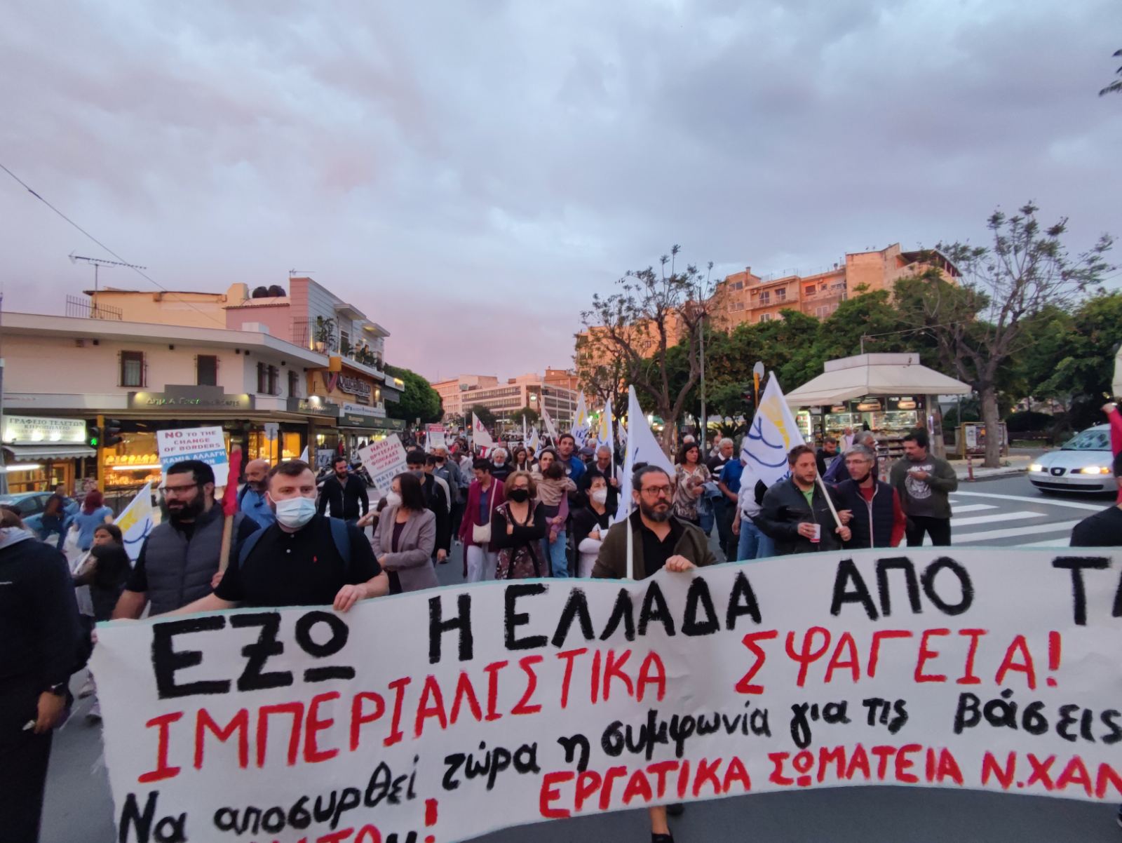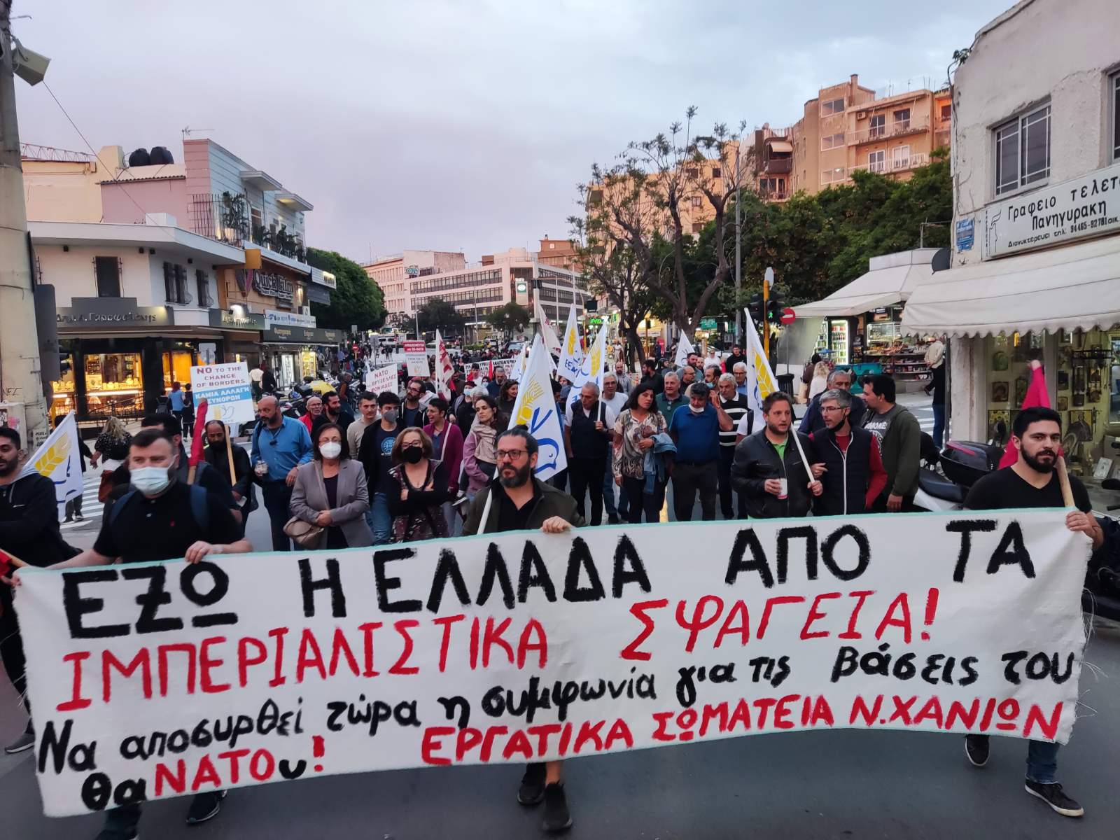Ξεκάθαρο μήνυμα ενάντια στην Ελληνοαμερικανική Συμφωνία για τις Βάσεις και τους ιμπεριαλιστικούς πολέμους στάλθηκε από τη συγκέντρωση και στη συνέχεια πορεία, στο κέντρο της πόλης που διοργάνωσε η Επιτροπή Ειρήνης Χανίων, εργατικά σωματεία, φοιτητικοί σύλλογοι, ο σύλλογος γυναικών και άλλοι φορείς.