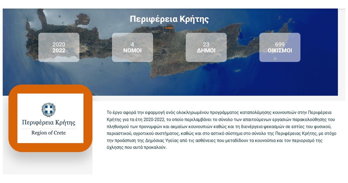 Το Σάββατο 25 και την Κυριακή 26 Ιουνίου η Περιφέρεια Κρήτης διοργανώνει στην πλ. Ελευθερίας στο Ηράκλειο, διήμερο ενημερωτικών εκδηλώσεων με θέμα το έργο της καταπολέμησης κουνουπιών που βρίσκεται σε εξέλιξη σε όλο το νησί.