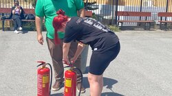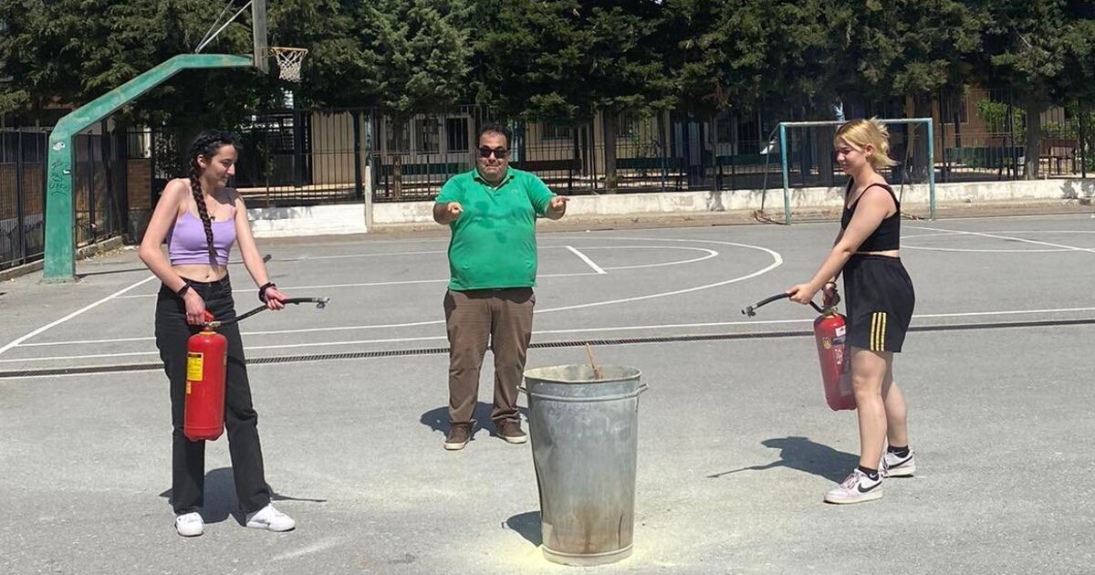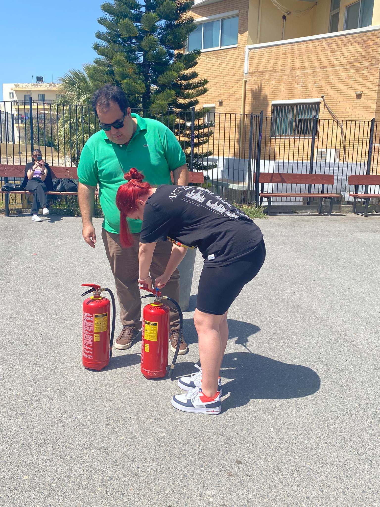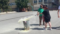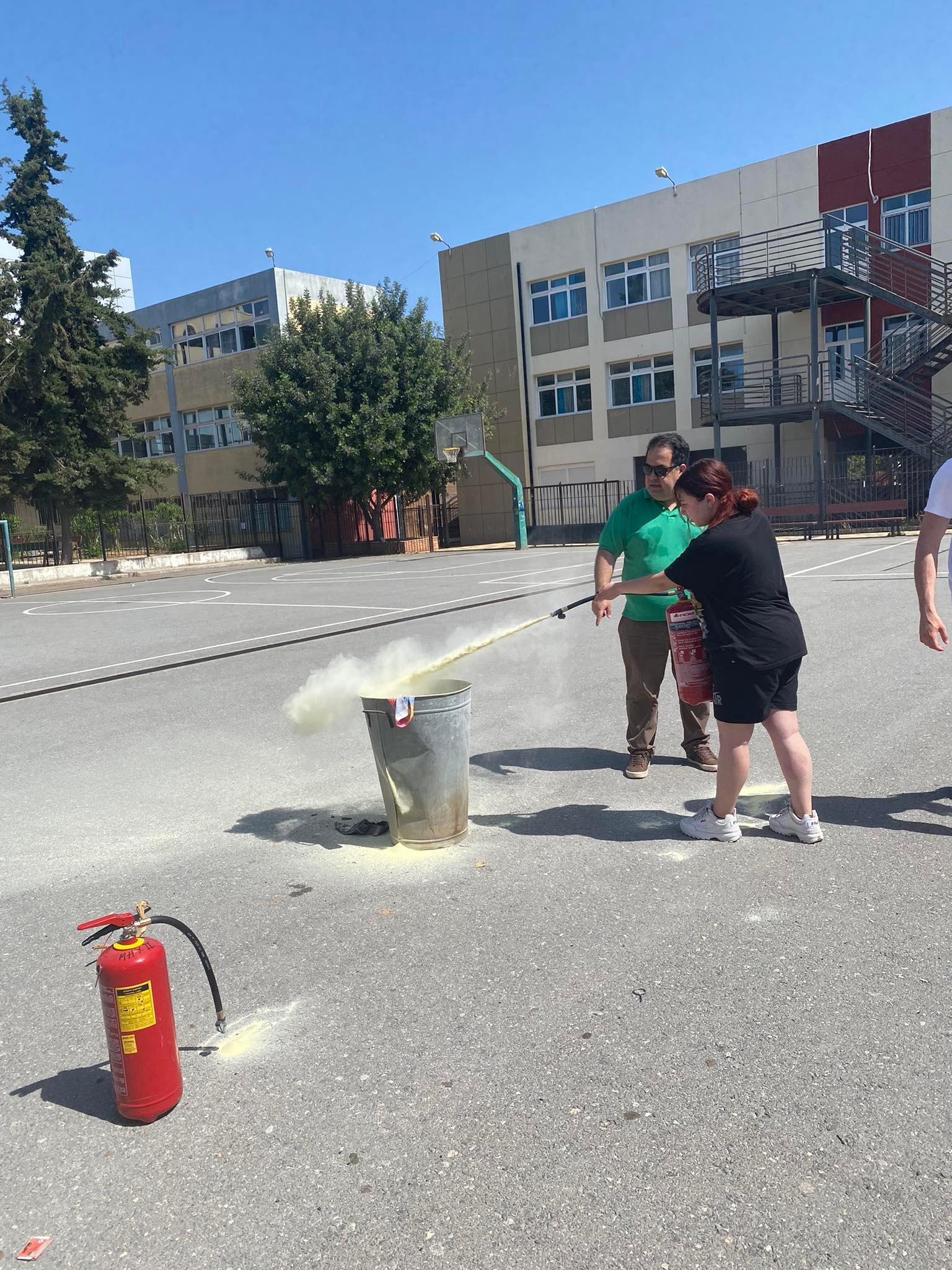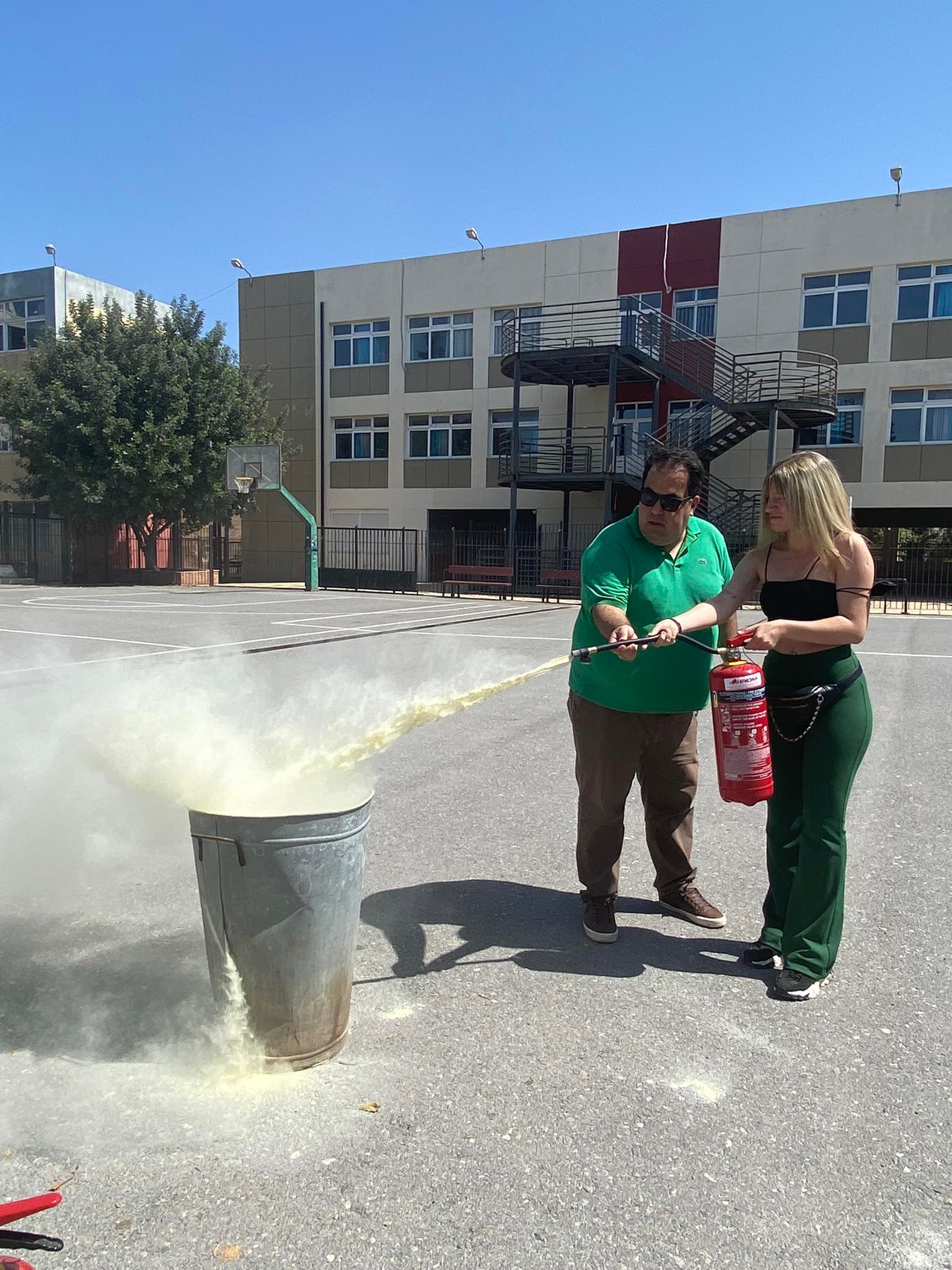 Όλοι οι σπουδαστές χρησιμοποίησαν πυροσβεστήρες και έσβησαν τη φωτιά, τηρώντας τις προδιαγραφές προστασίας τους.