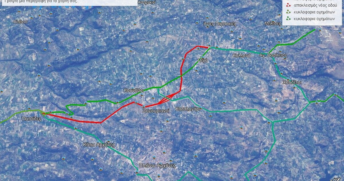 Η Δ/νση Τεχνικών Έργων της Περιφέρειας Κρήτης ενημερώνει ότι, στα πλαίσια της εκτέλεσης του έργου «Κατασκευή Ανισόπεδου Κόμβου Κουνάβων», και προκειμένου να εκτελεστούν εργασίες ασφαλτόστρωσης επί της κεντρικής αρτηρίας στην περιοχή του Ανισόπεδου Κόμβου Κουνάβων, θα πραγματοποιηθεί αποκλεισμός του τμήματος της νέας Επαρχιακής οδού Ηρακλείου – Βιάννου από τον κόμβο Αγίου Σώζοντα έως τον κόμβο Πεζών από την Τρίτη 12 Ιουλίου 2022 έως την Τρίτη 26 Ιουλίου 2022.