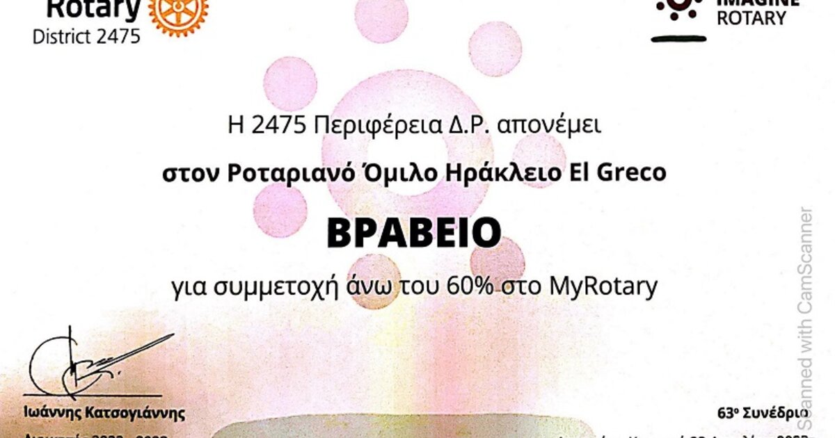 Διακρίσεις για τον Ροταριανό Όμιλο Ηρακλείου Ελ Γκρέκο