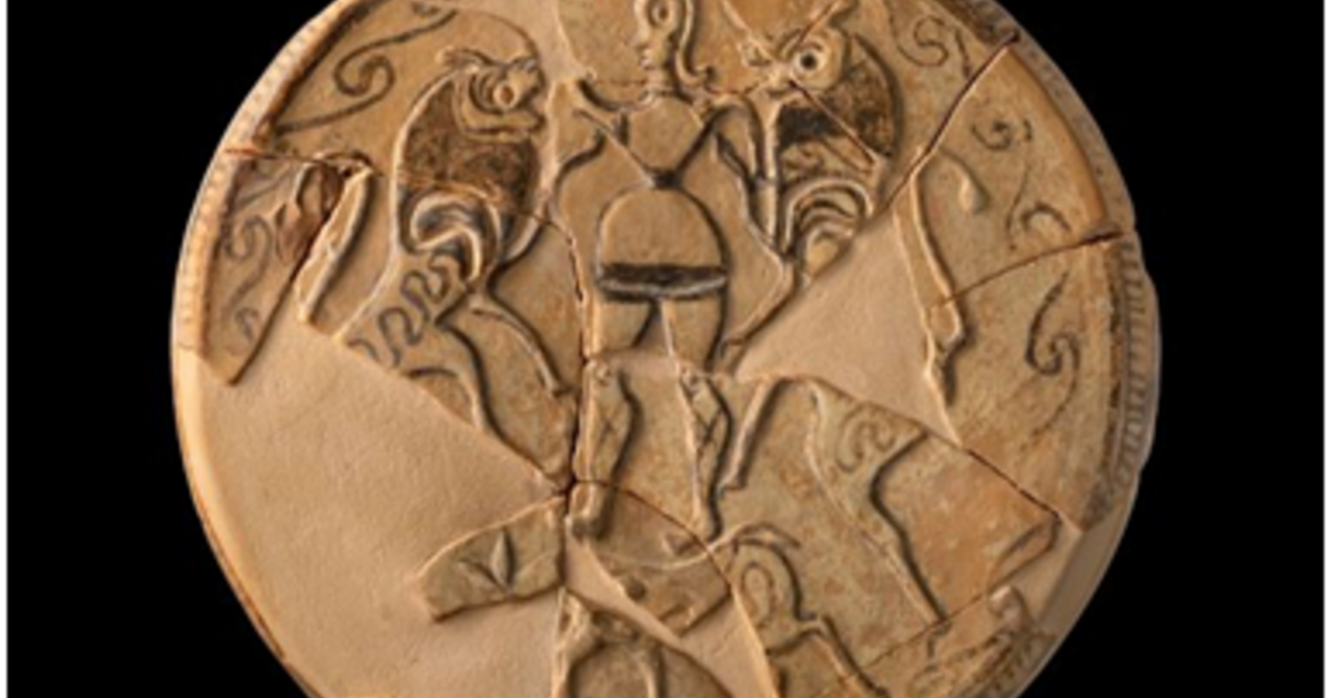 Φωτογραφία: πώμα με παράσταση του «Κυρίου των Αγριμιών», 7ος αι. π.Χ., Πρινιάς, Νεκρόπολη Σιδεροσπηλιάς. Εκτίθεται στην περιοδική έκθεση του Αρχαιολογικού Μουσείου Ηρακλείου ΕΚΑΤΟΜΠΟΛΙΣ: Ο Κόσμος της Αρχαϊκής Κρήτης (©ΥΠΠΟ/ΟΔΑΠ/Εφορεία Αρχαιοτήτων Ηρακλείου, φωτογραφική λήψη: Δευκαλίων Μανιδάκης).