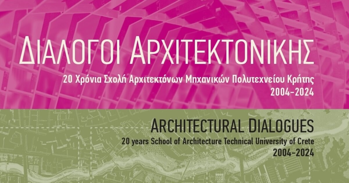 Η Σχολή Αρχιτεκτόνων Μηχανικών του Πολυτεχνείου Κρήτης και το Τεχνικό Επιμελητήριο Ελλάδας– Τμήμα Δυτικής Κρήτης ως συνεκδότες του τόμου, διοργανώνουν την επίσημη παρουσίαση του βιβλίου με τίτλο "Διάλογοι Αρχιτεκτονικής - 20 χρόνια Σχολή Αρχιτεκτόνων Μηχανικών Πολυτεχνείου Κρήτης 2004 - 2024".
