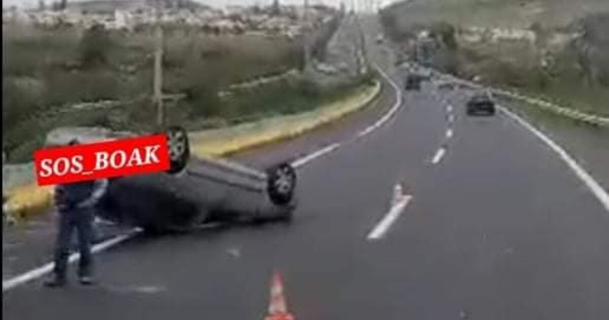 Το ατύχημα, πριν από το παλιό ΚΤΕΟ, στην ΕΟ Ηρακλείου-Αγίου Νικολάου, κάτω από συνθήκες που διερευνώνται.