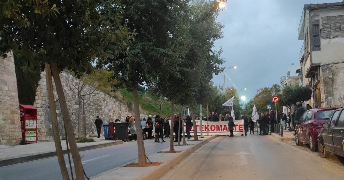 Διαμαρτυρία από το Εργατικό Κέντρο και τα Σωματεία, αναμένοντας τον Πρωθυπουργό