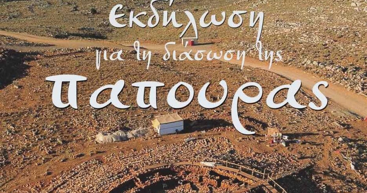 Εκδήλωση διαμαρτυρίας ενάντια στην επιχειρούμενη καταστροφή του σπουδαίου Μνημείου της Παπούρας, διοργανώνουν ο Δήμος Μινώα Πεδιάδας και οι φορείς που αγωνίζονται για τη σωτηρία του Μνημείου, απαιτώντας την πραγματική προστασία και ανάδειξη του. Η εκδήλωση θα πραγματοποιηθεί τη Δευτέρα 25 Αυγούστου, στις 7:00 μ.μ., στο Κηποθέατρο «Νίκος Καζαντζάκης» στο Ηράκλειο.