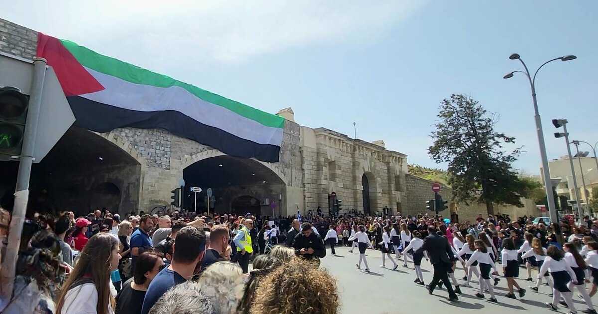 Συγκεκριμένα, ανήμερα της 25ης Μαρτίου έγινε παρέμβαση της Συνέλευσης Αλληλεγγύης στον Παλαιστινιακό Λαό, στην παρέλαση στο Ηράκλειο.