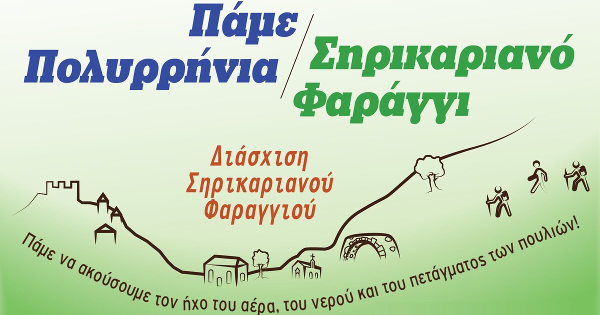 Τη Κυριακή 30 Απριλίου 2023, ο Πολιτιστικός Σύλλογος Πολλυρρήνιας με την υποστήριξη του Δήμου Κισσάμου, του Αννουσάκειου Θεραπευτηρίου και του Ελληνικού Ερυθρού Σταυρού, (Παράρτημα Κισσάμου), διοργανώνουν την διάσχιση του Σηρικαριανού Φαραγγιού.