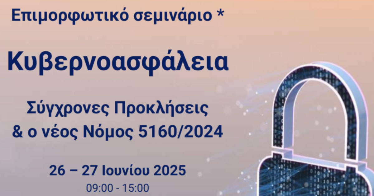Διήμερο επιμορφωτικό σεμινάριο: «Κυβερνοασφάλεια: Σύγχρονες Προκλήσεις και ο Νέος Νόμος 5160/2024»