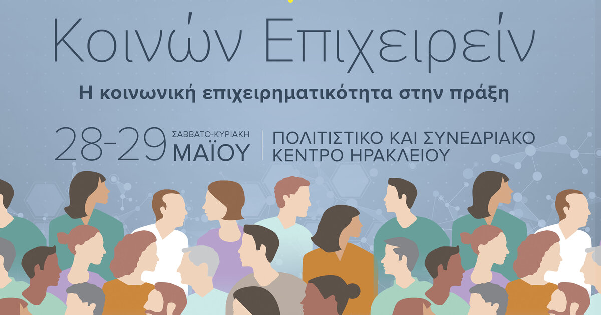 Διήμερο για την Κοινωνική Οικονομία με τίτλο «Κοινών Επιχειρείν», πραγματοποιείται από την Περιφέρεια Κρήτης το Σάββατο 28 και την Κυριακή 29 Μαΐου 2022, στο Πολιτιστικό & Συνεδριακό Κέντρο Ηρακλείου, στην αίθουσα της Πειραματικής Σκηνής και στο αίθριο του χώρου.