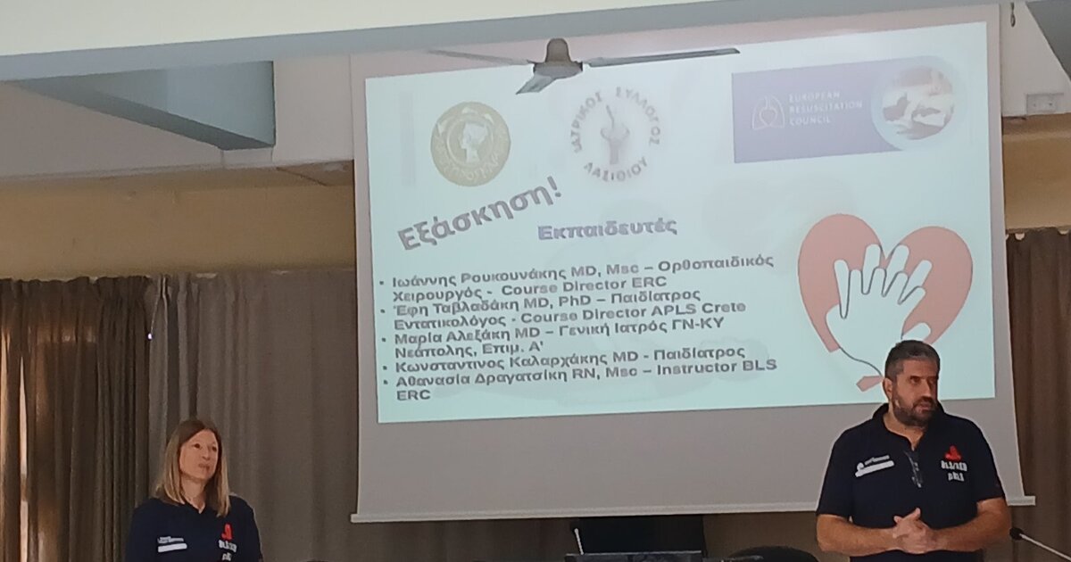Στην συνάντηση που πραγματοποιήθηκε στο κινηματοθέατρο REX συμμετείχαν οι εκπαιδευτές : Ιωάννης Ρουκουνάκης MD, Msc – Ορθοπαιδικός Χειρουργός - Course Director ERC, Έφη Ταβλαδάκη MD, PhD – Παιδίατρος Εντατικολόγος – Course Director APLS Crete, Μαρία Αλεξάκη MD – Γενική Ιατρός ΓΝ-ΚΥ Νεάπολης, Επιμ. Α’, Instructor BLS ERC, Κωνσταντίνος Καλαρχάκης MD – Παιδίατρος και Αθανασία Δραγατσίκη RN, Msc – Instructor BLS ERC.