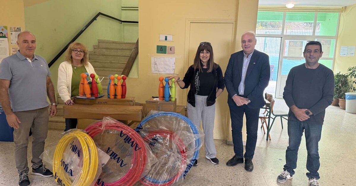 Το αθλητικό υλικό παραδόθηκε συγκεκριμένα στα νηπιαγωγεία και τα δημοτικά σχολεία
