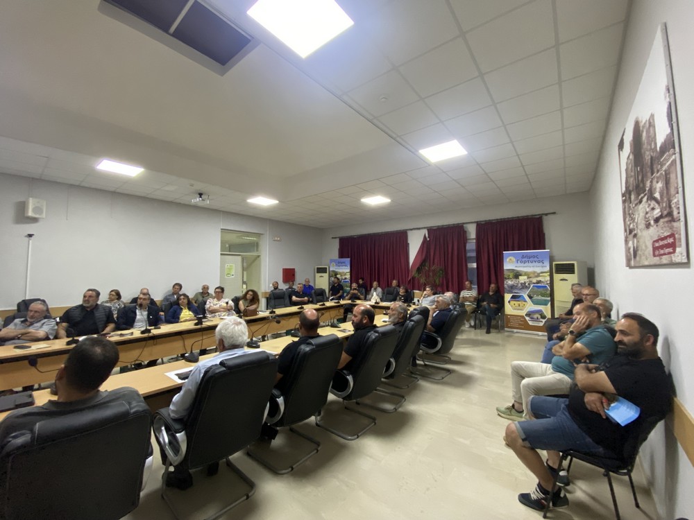 Στο πλαίσιο της ενημερωτικής συνάντησης, οι πρόεδροι των κοινοτήτων του Δήμου Γόρτυνας παρέλαβαν έντυπο υλικό – χάρτες, στους οποίους αποτυπώνονται (κατ’ εκτίμηση) οι αλλαγές που επιφέρει το Π.Δ. στα όρια των οικισμών. Υπενθυμίζεται ότι το Δημοτικό Συμβούλιο του Δήμου Γόρτυνας, με ομόφωνο ψήφισμά του, έχει ήδη καταδικάσει το περιεχόμενό του Π.Δ., επισημαίνοντας ότι δεν εξυπηρετεί τις ανάγκες της νησιωτικής και αγροτικής Ελλάδας και ειδικότερα των μικρών Δήμων και οικισμών της Κρήτης και έχει ζητήσει την άμεση αναστολή της εφαρμογής του, αλλά και την θέσπιση μεταβατικών διατάξεων, για την προστασία των ήδη υφιστάμενων δικαιωμάτων δόμησης και επενδυτικών σχεδίων, με ειδική μέριμνα για τους κατοίκους των μικρών οικισμών.