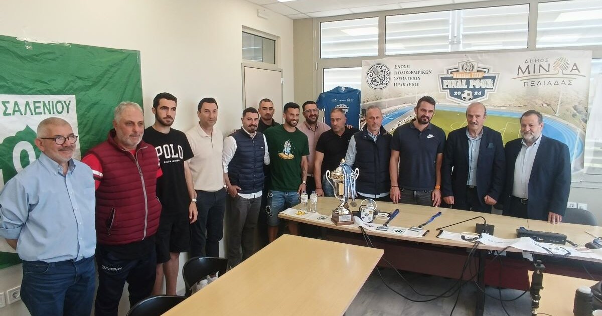 Οι διοργανωτές του 3ου Final Four του Κυπέλλου ΕΠΣΗ, Δήμος Μινώα Πεδιάδας, ΕΠΣΗ και Περιφέρειας Κρήτης, παρουσία των προπονητών και ποδοσφαιριστών των τεσσάρων φιναλίστ, παραχώρησαν σήμερα στο Δημοτικό Κατάστημα στο Αρκαλοχώρι, Συνέντευξη Τύπου για τη μεγάλη αυτή διοργάνωση, λίγες ημέρες πριν την σέντρα των αγώνων.