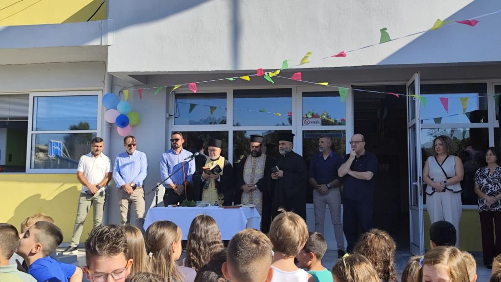 Με τον καθιερωμένο Αγιασμό, ξεκίνησε την Πέμπτη 11 Σεπτεμβρίου, η νέα σχολική χρονιά σε όλα τα σχολεία του Δήμου Μινώα Πεδιάδας. Μαθητές και εκπαιδευτικοί επέστρεψαν στα θρανία, γεμάτοι αισιοδοξία και χαμόγελα, έτοιμοι να αντιμετωπίσουν τις προκλήσεις της νέας χρονιάς, ανοίγοντας νέους δρόμους γνώσης και δημιουργίας.
