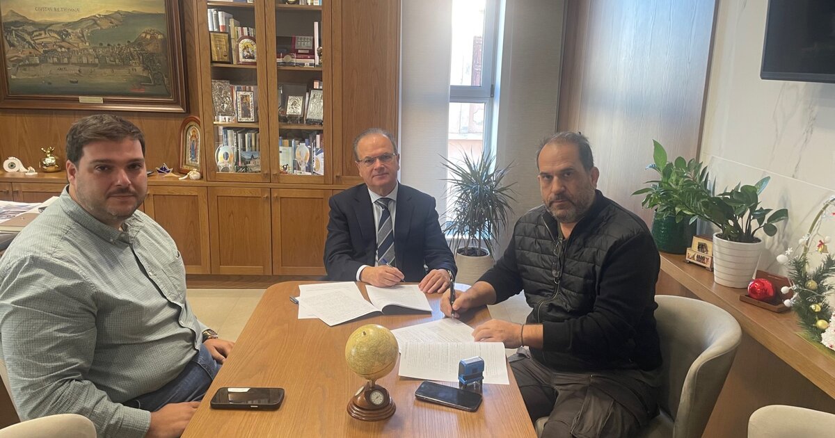 Σύμβαση που αφορά τα έργα επισκευής και συντήρησης Δημοτικών Κτιρίων υπεγράφη σήμερα το πρωί στο Δημαρχείο από τον Δήμαρχο Ρεθύμνης Γιώργη Χ. Μαρινάκη και τον εκπρόσωπο της εταιρείας ΙΩΑΝΝΗΣ ΛΕΙΟΝΤΑΡΑΚΗΣ και ΣΙΑ ΕΕ, παρόντος του Εντεταλμένου Συμβούλου με αρμοδιότητα την εποπτεία συντήρησης των υποδομών του Δήμου, Στέλιου Σπαντιδάκη.