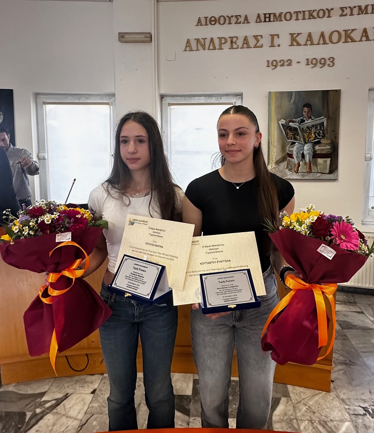 Ο Πρόεδρος του Δημοτικού Συμβουλίου, Ελευθέριος Καλλέργης, αφού συνεχάρη θερμά την Ευαγγελία Κουτάντου και τη Μαρίνα Πετούση για τις εξαιρετικές τους επιτυχίες, τόνισε πως οι δύο αθλήτριες αποτελούν πρεσβευτές των αξιών και των ιδεωδών που πρεσβεύει ο αθλητισμός. Επιπλέον, υπογράμμισε ότι οι επιτυχίες τους δεν είναι μόνο προσωπικά επιτεύγματα αλλά και παρακαταθήκες που ενθαρρύνουν τους συμμαθητές τους και εμπνέουν τις επόμενες γενιές να κυνηγήσουν τα όνειρά τους με πάθος, θάρρος και προσήλωση.