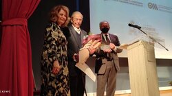 Ο κ. Ματζαπετάκης μετά την ανάγνωση των αποφάσεων ανακήρυξης σε επίτιμο Δημότη από τον Πρόεδρο του Δημοτικού Συμβουλίου Μάνθο Πολιτάκη και επίτιμο Πρόεδρο από τον Πρόεδρο του Μουσείου Καζαντζάκη Μιχάλη Ταρουδάκη, παρέλαβε ιδιαίτερα συγκινημένος τις τιμητικές πλακέτες και τα διπλώματα.