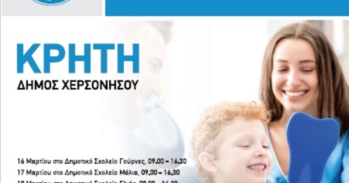 Δωρεάν προληπτικές οδοντιατρικές εξετάσεις σε παιδιά/μαθητές του Δήμου Χερσονήσου θα πραγματοποιηθούν από την Τετάρτη 16 Μαρτίου έως και την Κυριακή 20 Μαρτίου 2022, στο πλαίσιο της Δράσης Προληπτικής Ιατρικής / Οδοντιατρικής «ΙΠΠΟΚΡΑΤΗΣ» που υλοποιεί από το 2002 ο Οργανισμός «Το Χαμόγελο του Παιδιού».