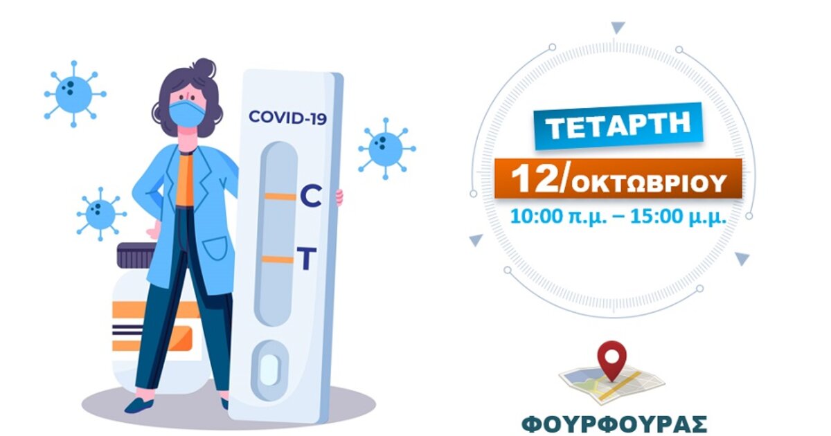Την ερχόμενη Τετάρτη 12 Οκτωβρίου 2022 από τις 10:00 π.μ. έως 15:00 μ.μ, κλιμάκια του ΕΟΔΥ σε συνεργασία με τον Δήμο Αμαρίου θα πραγματοποιούν δωρεάν rapid test για τον Covid-19 στο χώρο της αίθουσας του Πνευματικού - Πολιτιστικού Κέντρου Αμαρίου «Ο ΄Άγιος Νεκτάριος».