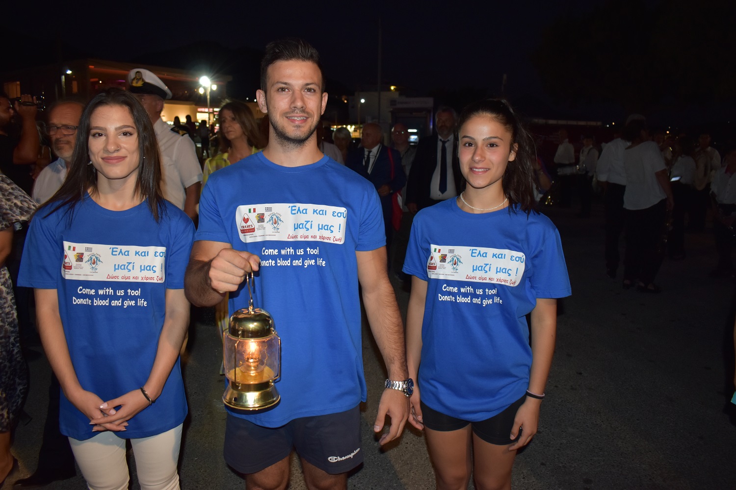 Ο Πρόεδρος των «Δοτών Ζωής» για να τιμήσει με την παρουσία του τον Πρόεδρο της Ιταλικής Ομοσπονδίας Εθελοντών Αιμοδοτών FRATRES, του πρόσφερε με ευλάβεια τη Φλόγα για να την παραδώσει στους τρεις λαμπαδηδρομείς οι οποίοι με υπομονή και σεβασμό την παρέλαβαν για να σηματοδοτήσουν έτσι την άφιξή της και να την οδηγήσουν μέσα από το πλήθος στην πλατεία για την Τελετή Έναρξης της 20ης Πανελλήνιας Λαμπαδηδρομίας Εθελοντών Αιμοδοτών. Μία στιγμή συγκίνησης με ιδιαίτερη τιμή αφού οι Λαμπαδηδρομείς, Προβιάς Γιώργος, Διεθνής Πρωταθλητής Κρίκων στην κατηγορία ανδρών, Κόνδυλα Σωτηρία, Παγκόσμια Πρωταθλήτρια Ζίου-Ζίτσου και Λουλούδη Παυλίνα, Παγκόσμια Πρωταθλήτρια Ζίου-Ζίτσου είναι νέα παιδιά που έχουν προσφέρει στον τόπο τους και στον αθλητισμό.