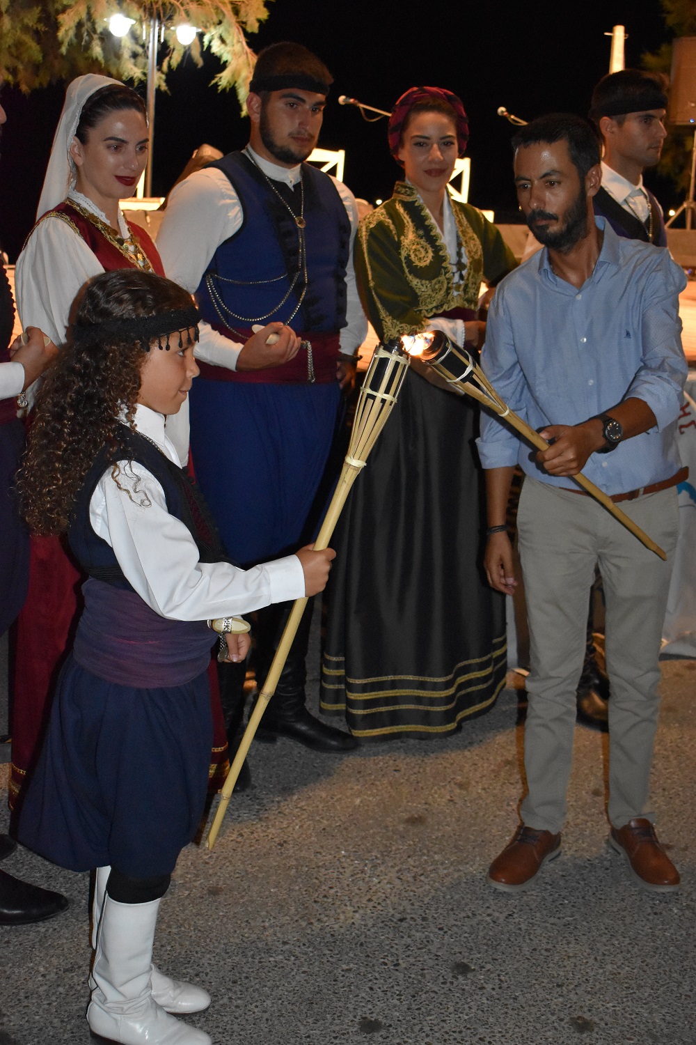 Οι Ριζίτες από τον Όμιλο Βρακοφόρων Κρήτης καλωσόρισαν με ριζίτικα τη Φλόγα και οι χορευτές του Ομίλου τράνταξαν τη γη του Πλακιά με τον χορό τους.