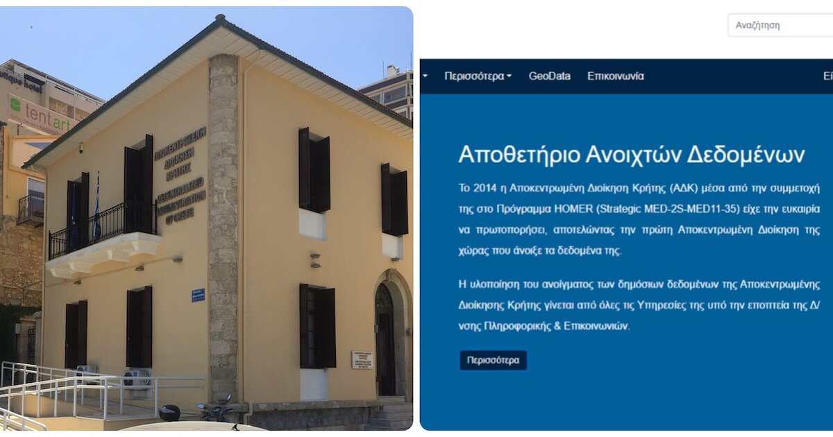 Η Αποκεντρωμένη Διοίκηση Κρήτης επελέγη να είναι μεταξύ των πρώτων φορέων στην Ελλάδα που θα αναρτήσουν τα δεδομένα τους στη νέα Εθνική Πύλη Ανοιχτών Δεδομένων