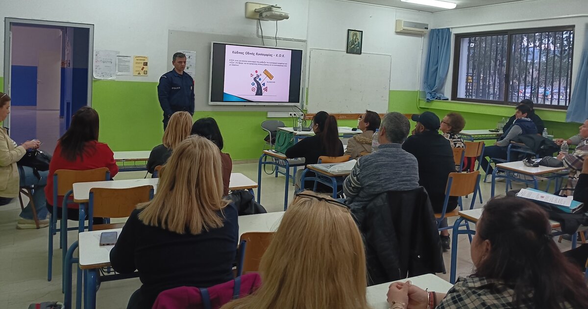 «Κατά την παρουσίαση οι εκπαιδευόμενοι και οι εκπαιδευτές είχαν την ευκαιρία να ενημερωθούν για βασικούς κανόνες κυκλοφοριακής αγωγής τόσο για τους πεζούς όσο και για τους οδηγούς οχημάτων: όρια ταχύτητας, κανόνες ασφαλείας, σήματα, οδική συμπεριφορά κλπ. Επίσης αναφέρθηκαν κανόνες πρόληψης τροχαίων ατυχημάτων και οι παρευρισκόμενοι εξέφρασαν τις απορίες και τα ερωτήματα τους.