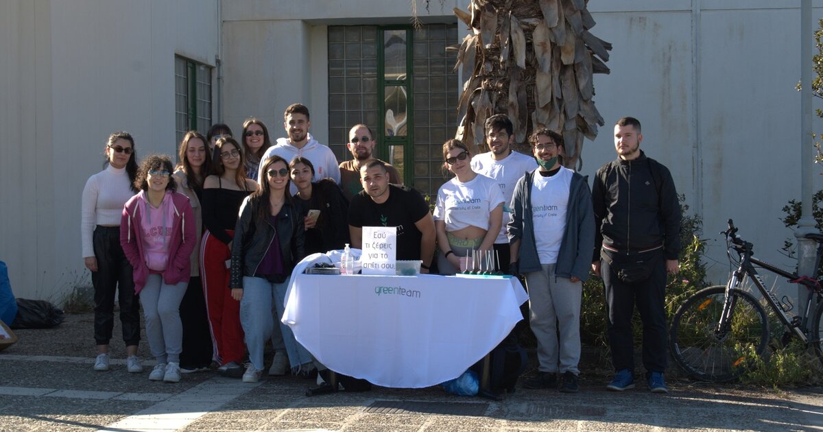 Η GreenTeam University of Crete πραγματοποίησε δράση καθαρισμού των υπαίθριων χώρων του Πανεπιστημίου Κρήτης, το απόγευμα της 12ης Απριλίου, η οποία έρχεται να αποτελέσει τη δυναμική επιστροφή της ομάδας στην ενεργό δράση μετά την πανδημία.