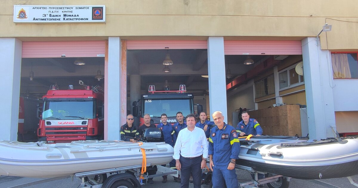 Ο Αντιπεριφερειάρχης Ηρακλείου Νίκος Συριγωνάκης σε μια λιτή εκδήλωση παρέδωσε στον διοικητή της 3ης ΕΜΑΚ Ηρακλείου Σταύρο Καλογιαννάκη δυο διασωστικές λέμβους με τους κινητήρες τους, τελευταίας τεχνολογίας.