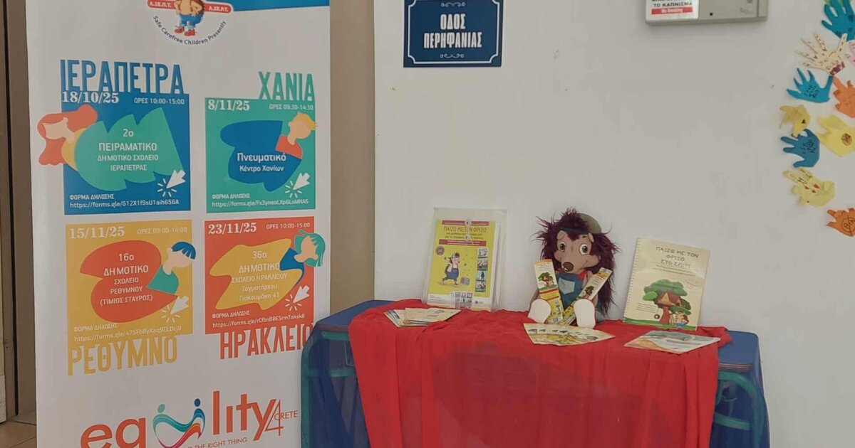 Με δύο δυναμικές και αλληλοσυμπληρούμενες δράσεις μέσα στο ίδιο Σαββατοκύριακο, η Περιφέρεια Κρήτης και η Α.ΞΕ.Π.Τ. ενισχύουν ουσιαστικά την εκπαιδευτική και κοινωνική θωράκιση των παιδιών και των σχολικών κοινοτήτων, προάγοντας την ασφάλεια, την ισότητα και τον σεβασμό.