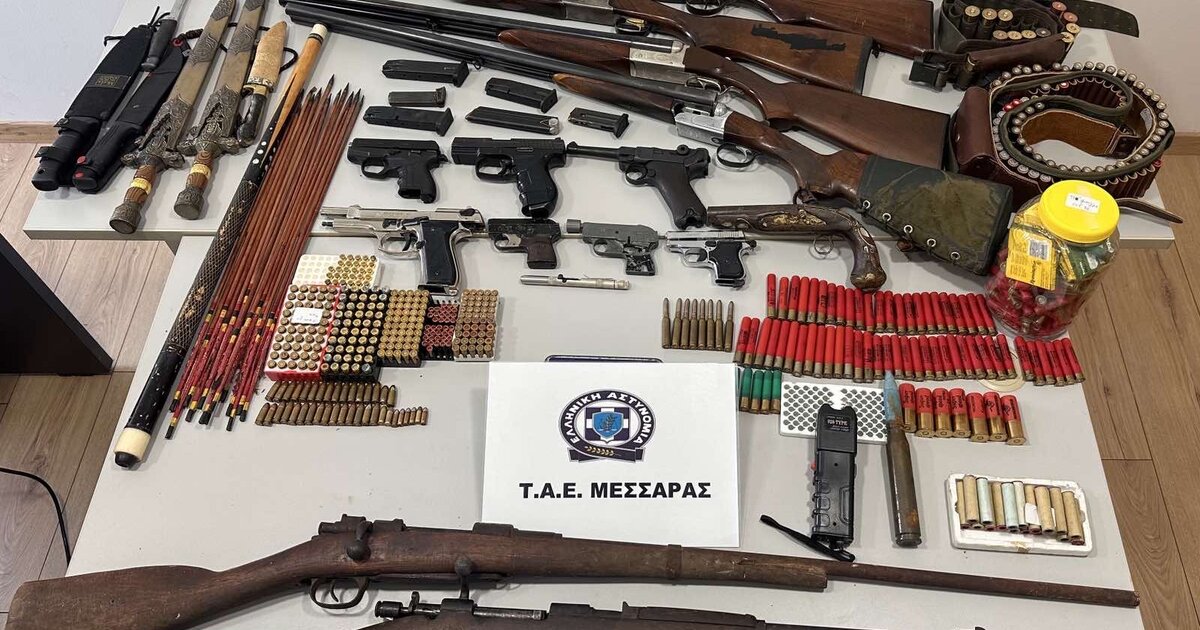 Στην κατοχή των δύο ανδρών βρέθηκαν, μεταξύ άλλων, 9 πιστόλια και 7 κυνηγετικά όπλα αλλά και εκατοντάδες σφαίρες