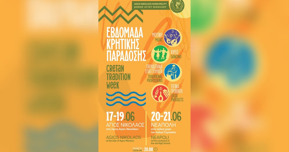 Ο Δήμος Αγίου Νικολάου σε συνεργασία με την Περιφέρεια Κρήτης, διοργανώνει «Εβδομάδα Κρητικής Παράδοσης» από 17 – 21 Ιουνίου στο Δήμο Αγίου Νικολάου.
