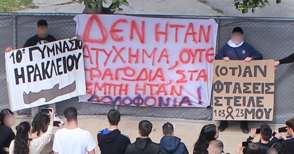 Οι μαθητές του 10ου Γυμνασίου και του Γυμνασίου Αρκαλοχωρίου θέλησαν την Παρασκευή να εκφράσουν σύντομα και περιεκτικά τη λύπη, την αγανάκτηση και τον προβληματισμό τους για το τραγικό συμβάν στα Τέμπη που συγκλόνισε τη χώρα μας.