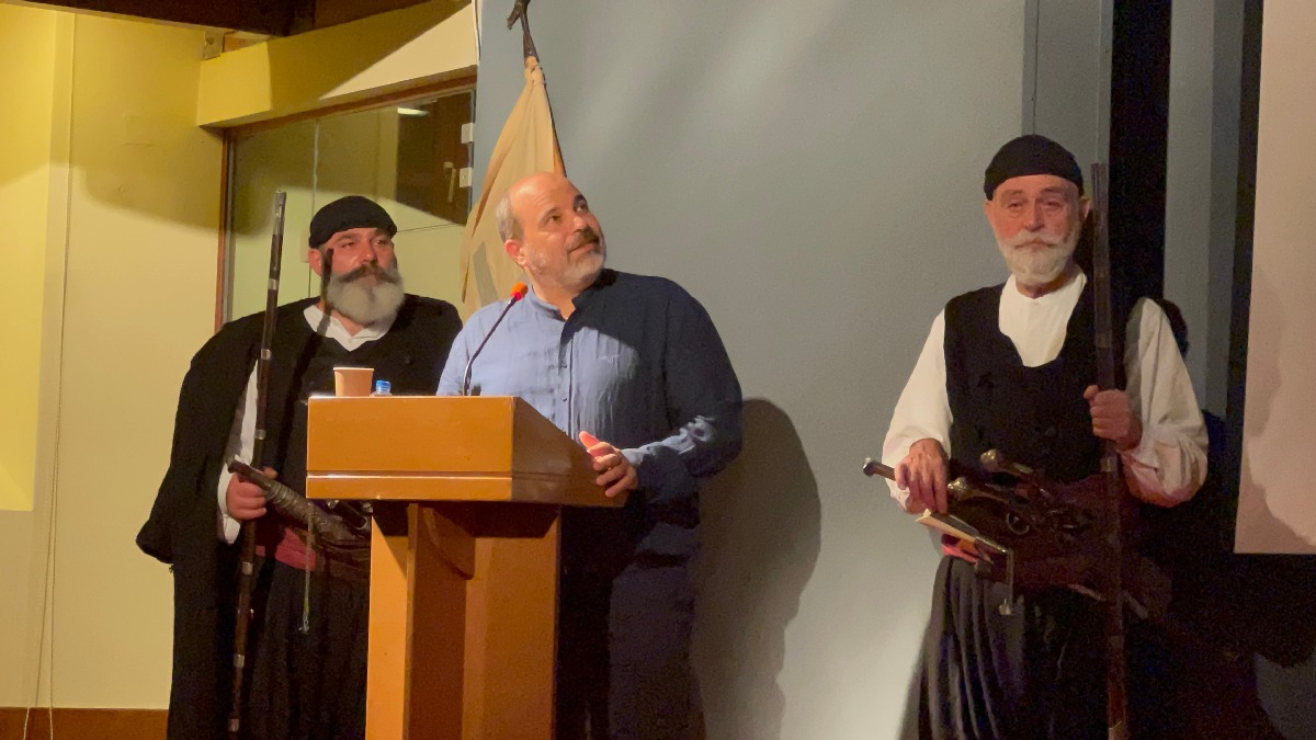 Προηγήθηκε η πολύ ενδιαφέρουσα και άκρως κατατοπιστική ομιλία του συλλέκτη-ερευνητή Ευτύχη Τζιρτζιλάκη, αφού προλόγισε ο πολύ γνωστός συγγραφέας και δημοσιογράφος Νίκος Ψιλάκης.