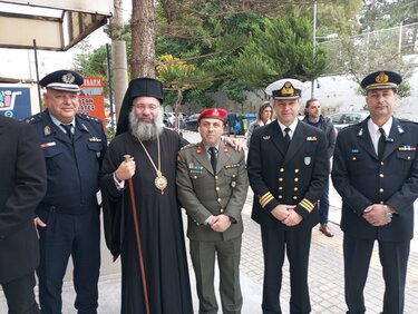 Τον καθιερωμένο Αγιασμό τέλεσε ο Σεβασμιώτατος Μητροπολίτης Ρεθύμνης και Αυλοποτάμου κ. Πρόδρομος και παρέστησαν η Γραμματέα της Αποκεντρωμένης Διοίκησης Κρήτης κ. Μαρία Κοζυράκη, εκπρόσωποι των θεσμικών Αρχών, των Σωμάτων Ασφαλείας, του Στρατού και φορέων της πόλης.