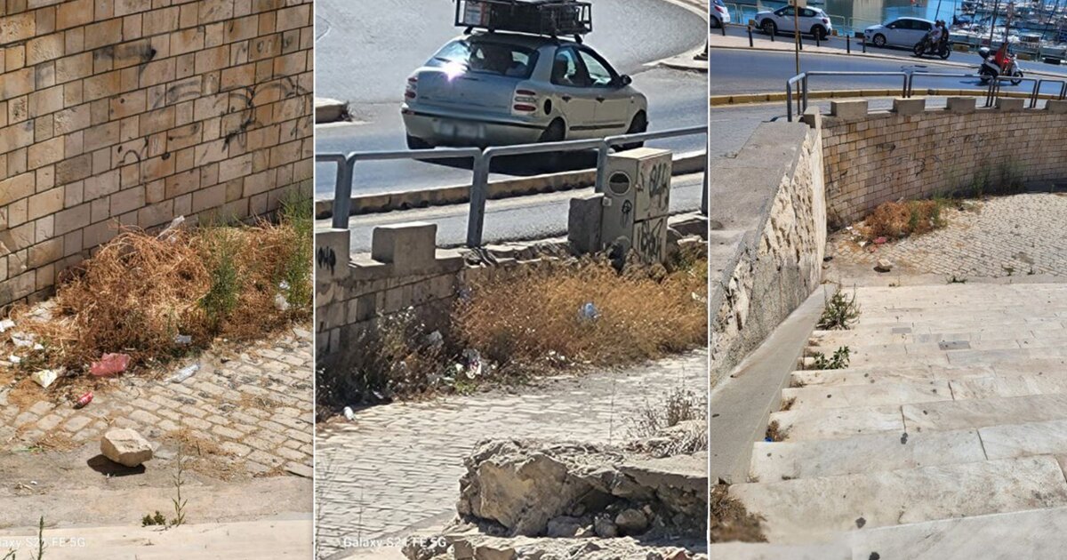 Τα σκαλοπάτια που οδηγούν στο παραλιακό μέτωπο θα μπορούσαν να είναι ένα καλαίσθητο σημείο θέας προς το ενετικό λιμάνι και τη μαρίνα - αντίθετα όμως, θυμίζουν εγκαταλειμμένη γωνιά που δεν έχει δει φροντίδα εδώ και καιρό. Η ανάγκη για στοιχειώδη καθαριότητα και φροντίδα σε τόσο κομβικά σημεία της πόλης είναι αυτονόητη. Δυστυχώς, όμως, παραμένει ζητούμενο.