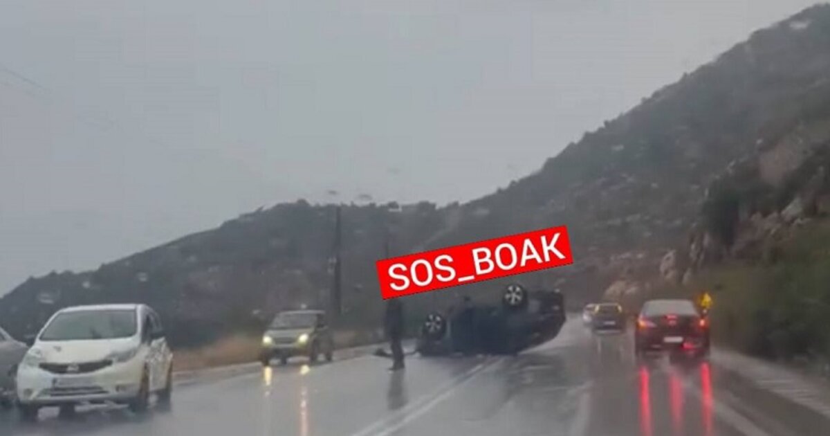 Ο οδηγός έχασε τον έλεγχο του οχήματος, προφανώς λόγω της ολισθηρότητας του οδοστρώματος, με αποτέλεσμα αυτό να ανατραπεί στη μέση του δρόμου!