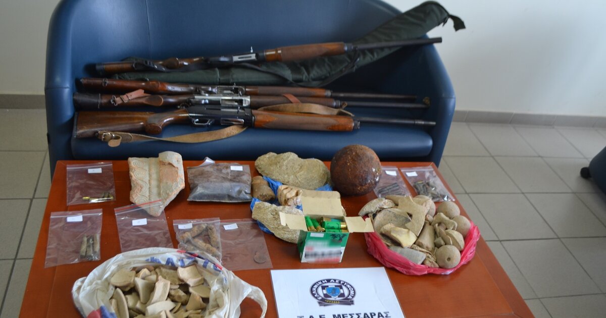 Οι αστυνομικοί του ΤΑΕ Μεσαράς πραγματοποίησαν έρευνα στο σπίτι του συλληφθέντα, στη διάρκεια της οποίας βρέθηκαν και κατασχέθηκαν τα όπλα και τα αρχαία αντικείμενα που είχε στην κατοχή του. Ο 68χρονος άνδρας κατηγορείται για παραβάσεις της νομοθεσίας περί όπλων, αρχαιοτήτων και πολιτιστικής κληρονομιάς και εκρηκτικών.