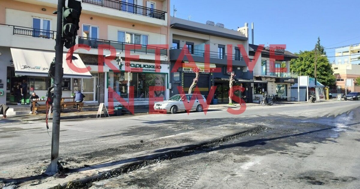 Το φανάρι στη συμβολή των οδών Ικάρου και Καζαντζίδη τυλίχθηκε στις φλόγες και καταστράφηκε!