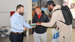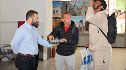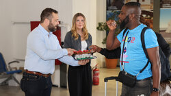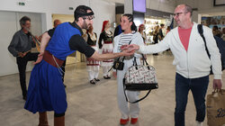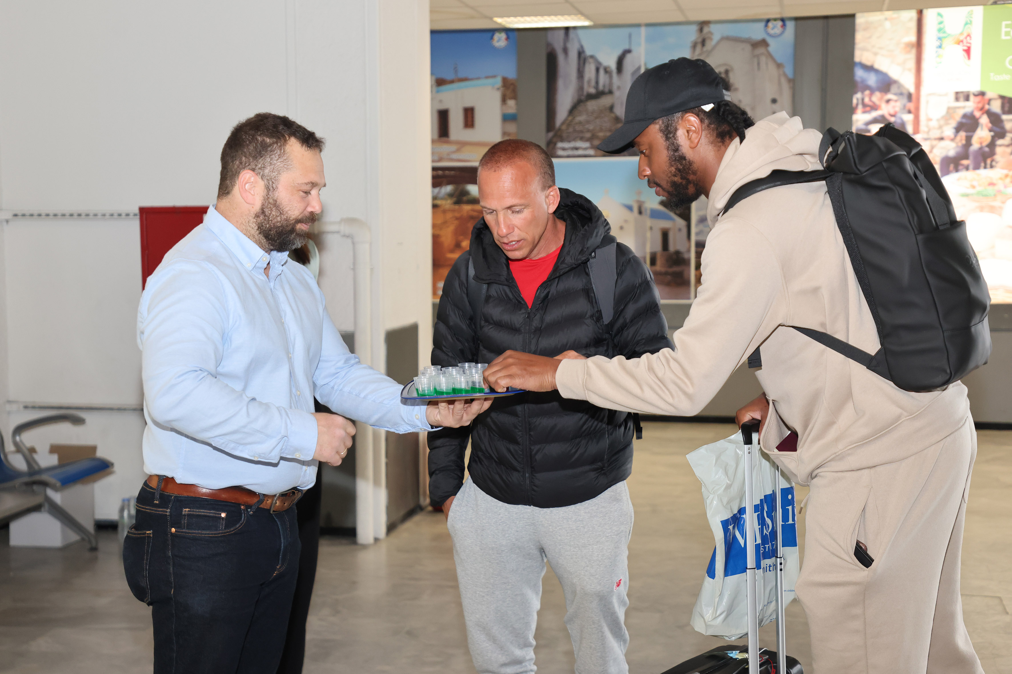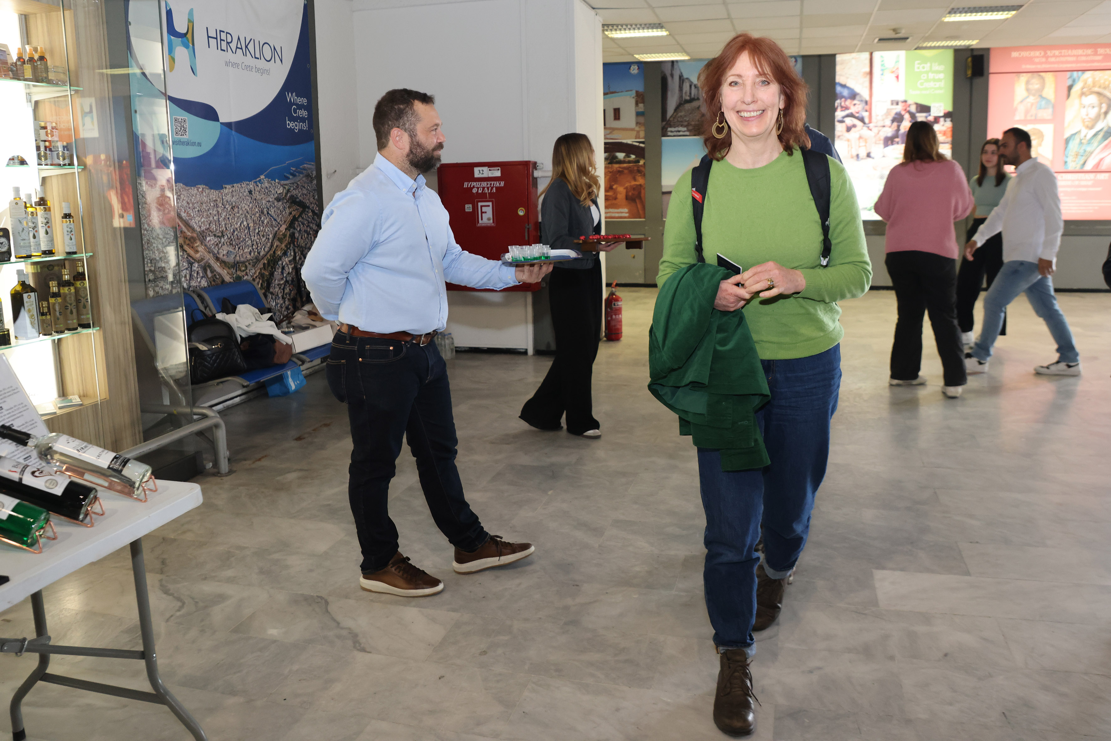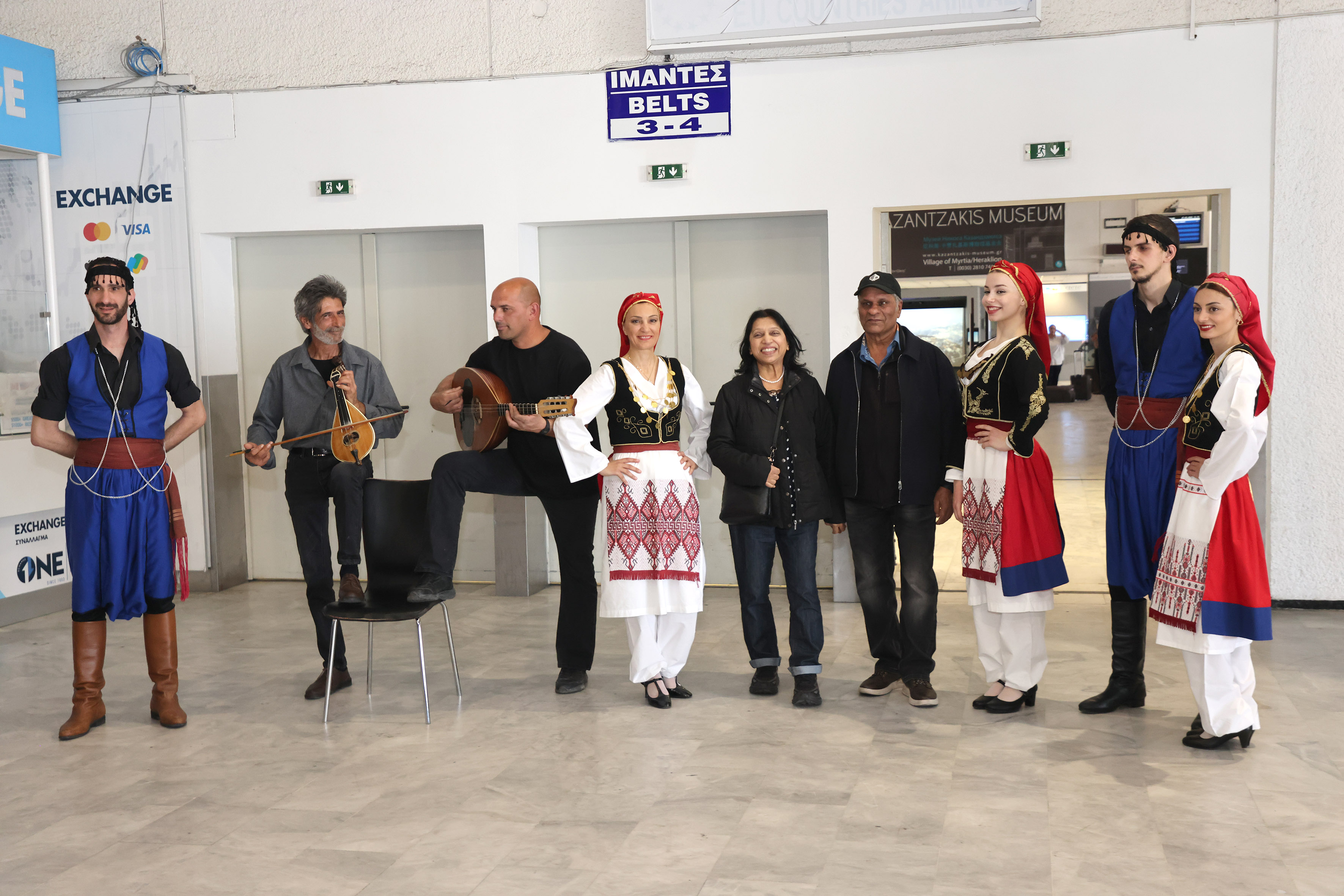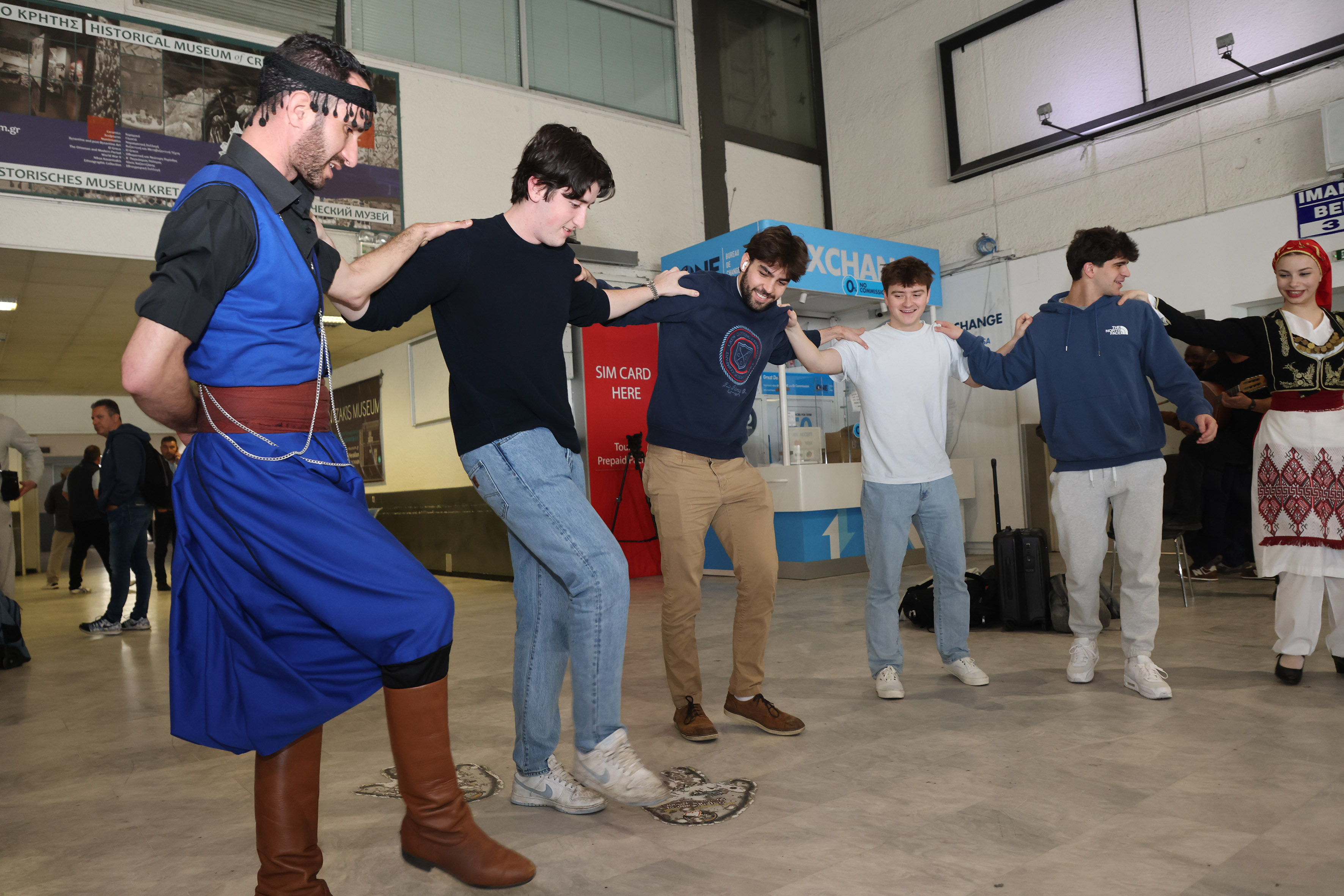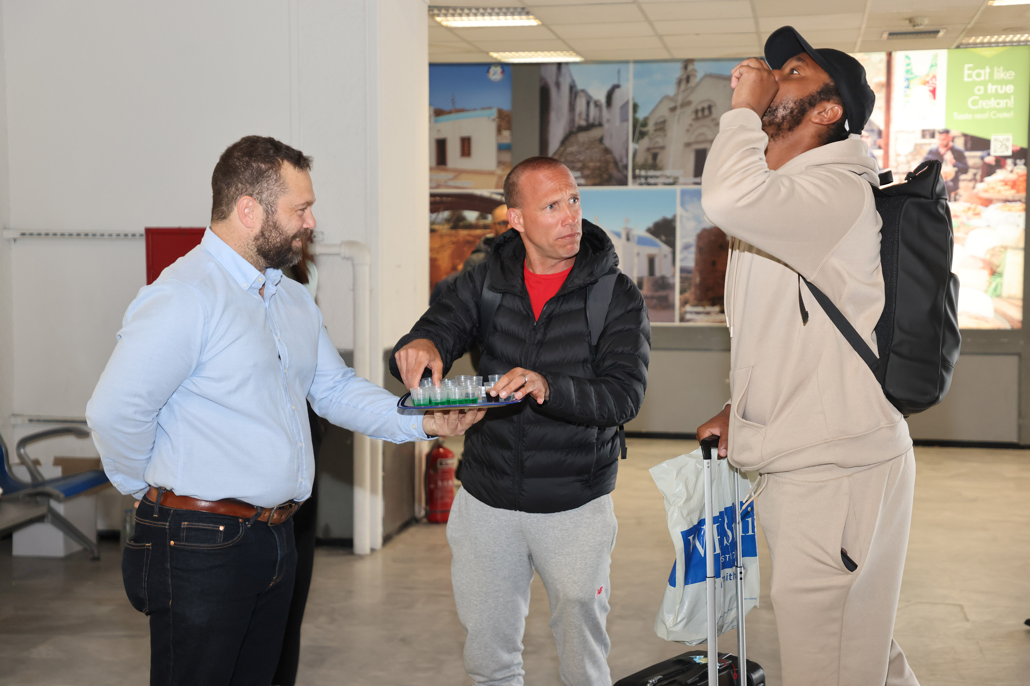 Μάλιστα, μια μικρή υποδοχή πραγματοποιήθηκε λίγο μετά τις 12.00 το μεσημέρι στο αεροδρόμιο "Ν.Καζαντζάκης", παρουσία του αερολιμενάρχη Ηρακλείου Ι.Ουρανού, του αντιπεριφερειάρχη Ηρακλείου Νίκου Συριγωνάκη και μελών παραδοσιακών κρητικών συγκροτημάτων, ενώ οι επισκέπτες με το που πάτησαν ... Κρήτη, πήραν "γεύση" από το νησί, δοκιμάζοντας παραδοσιακή τσικουδιά και σοκολατάκια.