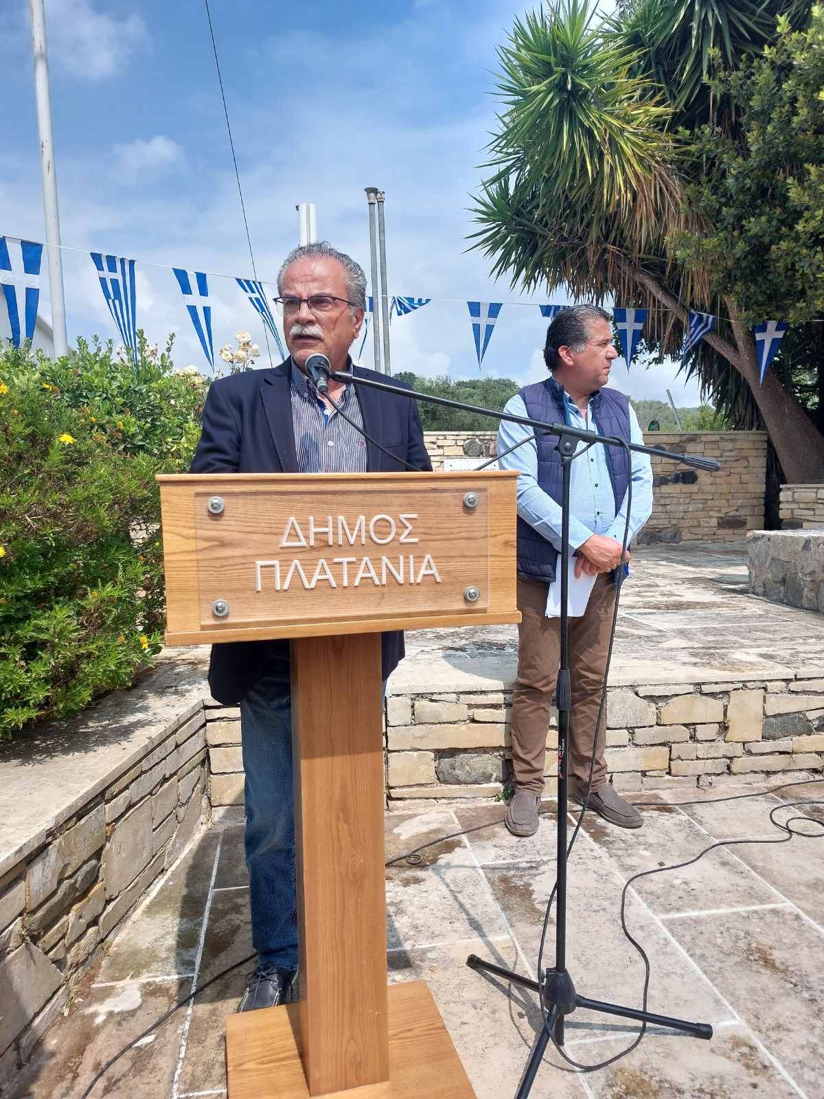 Ομιλία για τα γεγονότα πραγματοποίησε ο Διοικητής της 5ης ΤΑΞ.ΠΖ «V Μεραρχίας Κρητών», Ταξίαρχος Μιχαήλ Πλουμής, όπου αναφέρθηκε αφενός στο ιστορικό που συνδέει τη Σχολή Ευελπίδων με τα γεγονότα και στη διαχρονική προσφορά τους στο Ελληνικό Έθνος. Στην εκδήλωση επίσης παραβρέθηκαν ο Αντιπεριφερειάρχης Χανίων κ Νικόλαος Καλογερής, ο Διοικητής της Π.Υ.Χανίων κ. Ξενοφών Τσιλιμιγκάκης, οι Αντιδήμαρχοι Πλατανιά κ. Χρήστος Αρχοντάκης, κ. Γεώργιος Καλαϊτζάκης και η κα Ασπασία Λουπάκη, ο Στρατιωτικός Ακόλουθος της Βρετανικής Πρεσβείας, εκπρόσωποι της Πολεμικής Αεροπορίας, του Ναυτικού, της 5ης Μεραρχίας, της Ένωσης Αποστράτων Αξιωματικών Χανίων και αντιπροσωπείες απογόνων των Βετεράνων από τις Συμμαχικές χώρες .