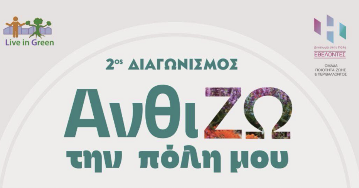Πρόσκληση προς όλους στην απονομή των βραβείων για τον 2ο Διαγωνισμό «Ανθί-ΖΩ την πόλη μου», ο οποίος διοργανώνεται από την εθελοντική ομάδα ποιότητας ζωή και περιβάλλοντος της Δημοτικής Παράταξης «Δικαίωμα στην Πόλη», η οποία θα πραγματοποιηθεί την Πέμπτη 5 Ιουνίου, στις 19.00, στο Πάρκο Γεωργιάδη.