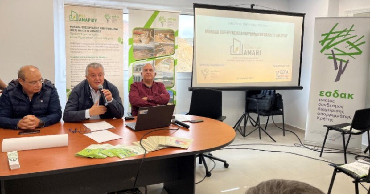 Με μεγάλη επιτυχία, όπως ανακοινώθηκε, πραγματοποιήθηκε από τον Ενιαίο Σύνδεσμο Διαχείρισης Απορριμμάτων Κρήτης (ΕΣΔΑΚ) η Εκδήλωση Ενημέρωσης για τη Μονάδα Επεξεργασίας Απορριμμάτων (ΜΕΑ) και Χώρος Υγειονομικής Ταφής των Υπολειμμάτων (ΧΥΤΥ) Αμαρίου.