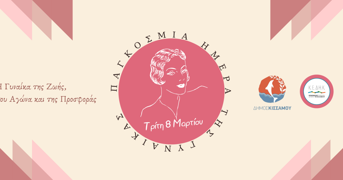 Ο Δήμος Κισσάμου και η Κοινωφελής Επιχείρηση του Δήμου Κισσάμου με αφορμή την Παγκόσμια Ημέρα της Γυναίκας διοργανώνουν την εκδήλωση: « Η Γυναίκα της Ζωής, του Αγώνα και της Προσφοράς», την Τρίτη 8 Μαρτίου 2022, στις 18:00, στην αίθουσα εκδηλώσεων του Δημαρχείου Κισσάμου.