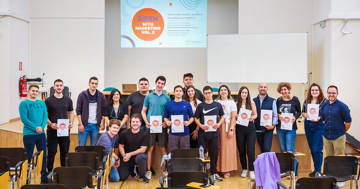 Την Πέμπτη 1 Ιουνίου στο Τμήμα Διοικητικής Επιστήμης και Τεχνολογίας (Άγιος Νικόλαος Λασιθίου) του Ελληνικού Μεσογειακού Πανεπιστημίου (ΕΛΜΕΠΑ) πραγματοποιήθηκε επιτυχώς η εκδήλωση “Grow with Marketing 2.0” με τις παρουσιάσεις των εργασιών μάρκετινγκ που δημιούργησαν οι ομάδες των φοιτητών του μαθήματος Μάρκετινγκ (Β’ εξάμηνο).