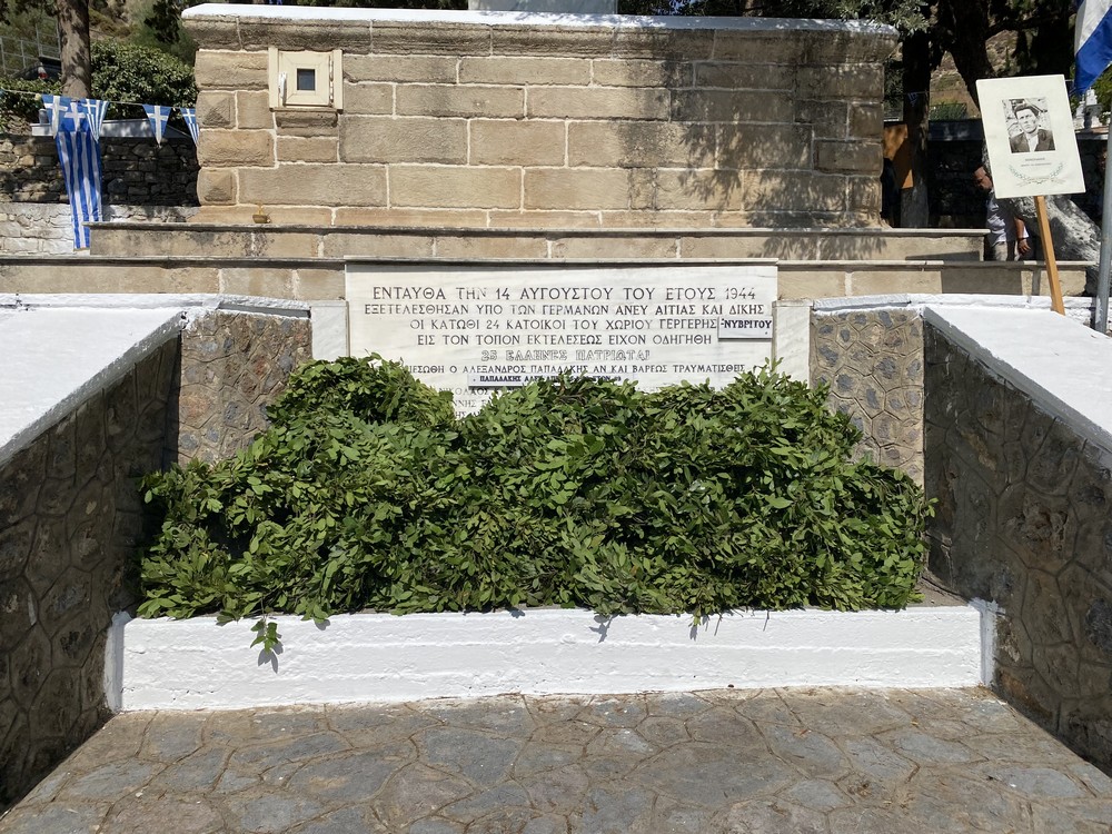 Σε κλίμα συγκίνησης πραγματοποιήθηκε το ετήσιο μνημόσυνο προς τιμήν των ηρώων της Γέργερης και της Νυβρίτου, που εκτελέσθηκαν στις 14 Αυγούστου 1944, από τα γερμανικά στρατεύματα. Η Θεία Λειτουργία τελέστηκε στο εξωκκλήσι της Παναγίας Χανουτιάς (Κεράς) και ακολούθησε πομπή με την σημαία στην μνήμη των 25 εκτελεσθέντων, από τον τόπο κράτησης ως τον τόπο εκτέλεσής τους. Στην συνέχεια, τελέστηκαν μνημόσυνο στο εξωκκλήσι της Παναγίας και επιμνημόσυνη δέση στο Μνημείο Πεσόντων, προσκλητήριο νεκρών, κατάθεση στεφάνων, χαιρετισμοί – πανηγυρικός λόγος από τον εκπαιδευτικό Ιωάννη Κρουσανιωτάκη, τήρηση ενός λεπτού σιγής και ανάκρουση του εθνικού ύμνου.