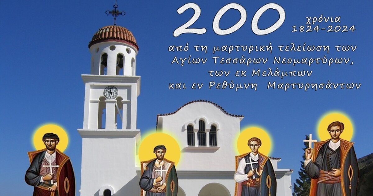 Ο Δήμος Αγίου Βασιλείου συμμετέχοντας στις επετειακές εκδηλώσεις των 200 ετών από τη μαρτυρική τελείωση των Αγίων Τεσσάρων Νεομαρτύρων, Γεωργίου, Αγγελή, Μανουήλ και Νικολάου, των εκ Μελάμπων και εν Ρεθύμνη μαρτυρησάντων, σε συνεργασία με τη Διεύθυνση Δευτεροβάθμιας Εκπαίδευσης Ρεθύμνου και την Ενορία Μελάμπων, διοργανώνει σχετική εκδήλωση – ημερίδα στο γενέθλιο τόπο τους.