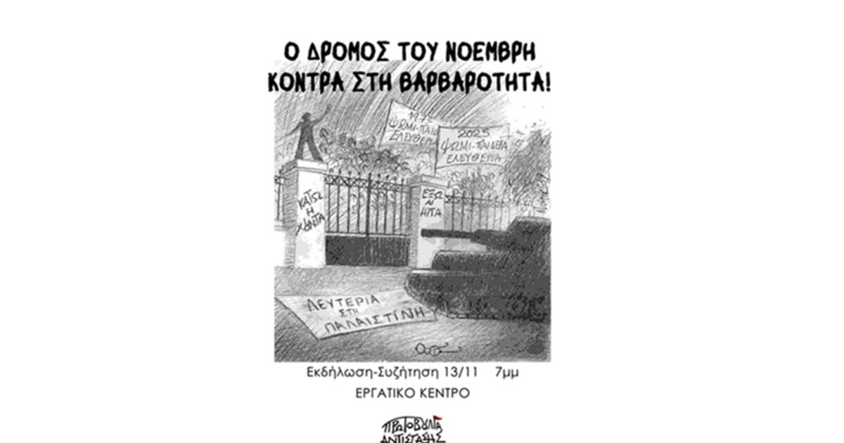 "Εργασιακός Μεσαίωνας, Καταστολή, Διώξεις, Πολεμική προετοιμασία" Ο Δρόμος του Νοέμβρη Κόντρα στη Βαρβαροτητα!