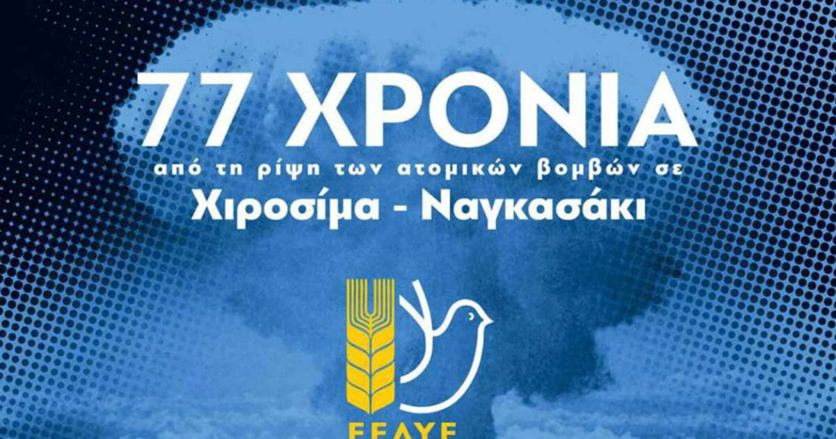 "Εβδομήντα επτά χρόνια συμπληρώνονται από το ιμπεριαλιστικό έγκλημα των ΗΠΑ κατά του λαού της Ιαπωνίας, όταν το πυρηνικό μανιτάρι εξαφάνισε από προσώπου γης χιλιάδες ανθρώπους στη Χιροσίμα και το Ναγκασάκι (6 και 9 Αυγούστου του 1945). Χιλιάδες επίσης οι τραυματισμένοι, οι άνθρωποι που «έζησαν» με τα εγκαύματα και άλλες πληγές από τον πυρηνικό όλεθρο. Τεράστιες οι υλικές καταστροφές με ισοπεδωμένες τις δύο πόλεις-στόχους των ΗΠΑ. Πραγματικός στόχος οι λαοί, η ΕΣΣΔ, το ανερχόμενο επαναστατικό και εργατικό κίνημα. H ιμπεριαλιστική προπαγάνδα, ακόμα και σήμερα, προσπαθεί να συγκαλύψει τους πραγματικούς στόχους χρησιμοποιώντας το ψέμα της «στρατιωτικής αναγκαιότητας» των πληγμάτων, ενώ ο Β΄ Παγκόσμιος ιμπεριαλιστικός Πόλεμος είχε τελειώσει!